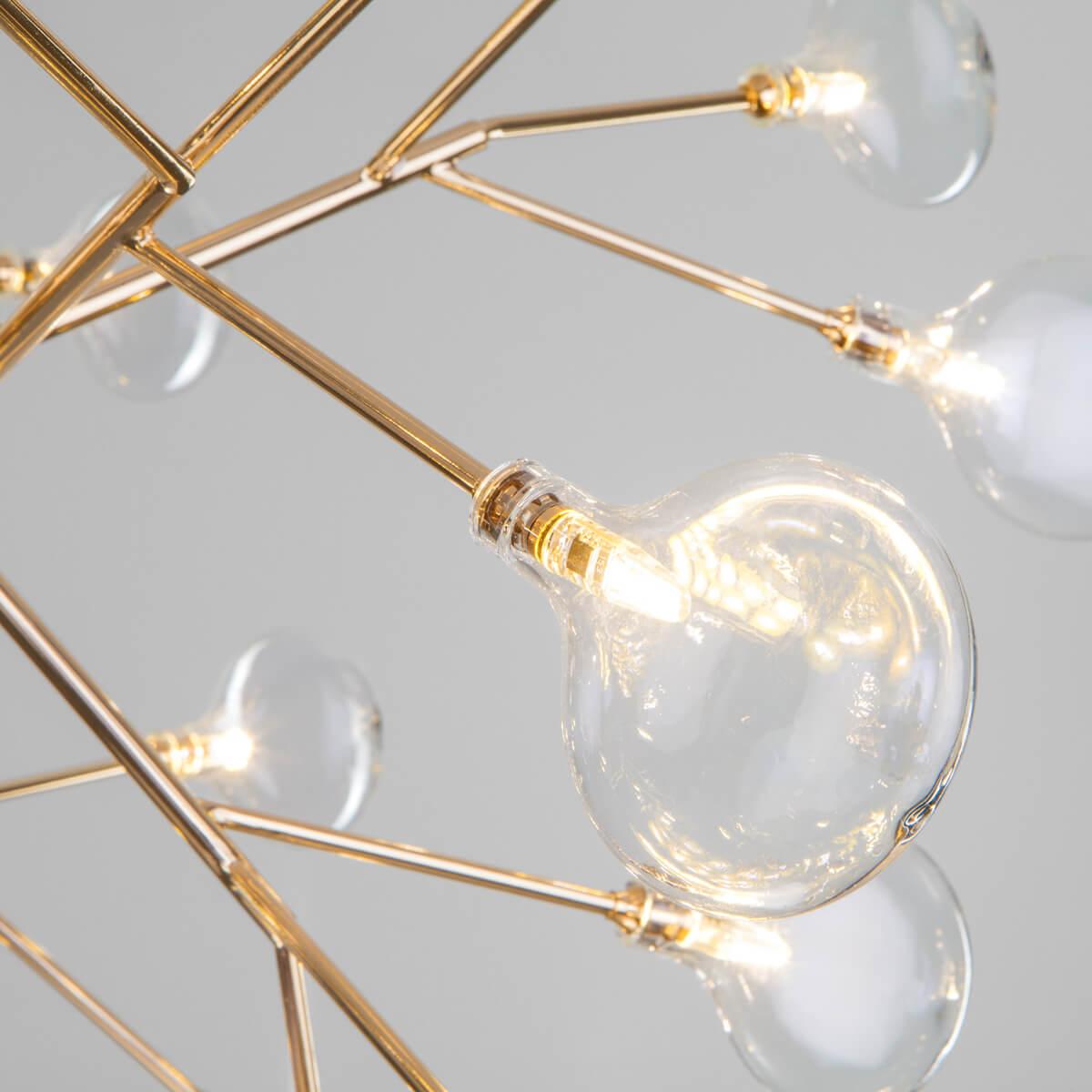Производитель светильника рекомендует для устройства 27 светодиодных ламп с цоколем G4 и мощностью 3 W, что позволит осветить помещение площадью 40 кв.м. Габариты изделия: высота – 650 мм, диаметр – 755 мм.