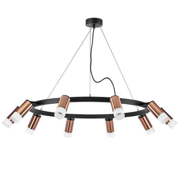 Производитель светильника рекомендует для устройства 10 галогеновых ламп с цоколем GU10 и мощностью 50 W, что позволит осветить помещение площадью кв.м. Габариты изделия: высота – 585 мм, диаметр – 1200 мм.