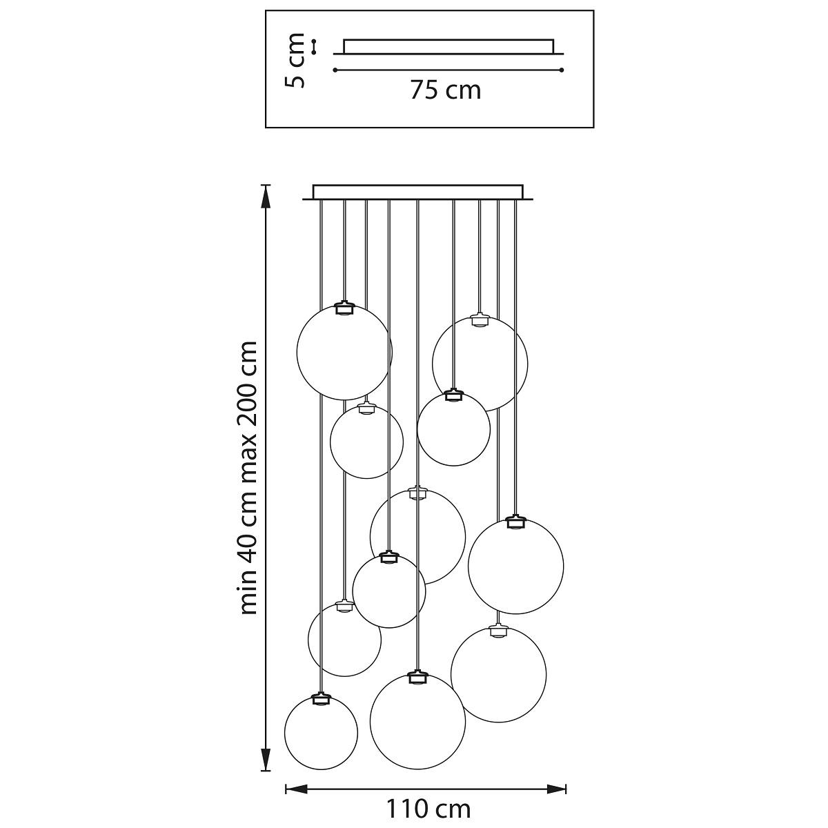 Производитель светильника рекомендует для устройства светодиодных ламп с цоколем LED и мощностью 3 W, что позволит осветить помещение площадью кв.м. Габариты изделия: высота – 400 мм, диаметр – 1100 мм.