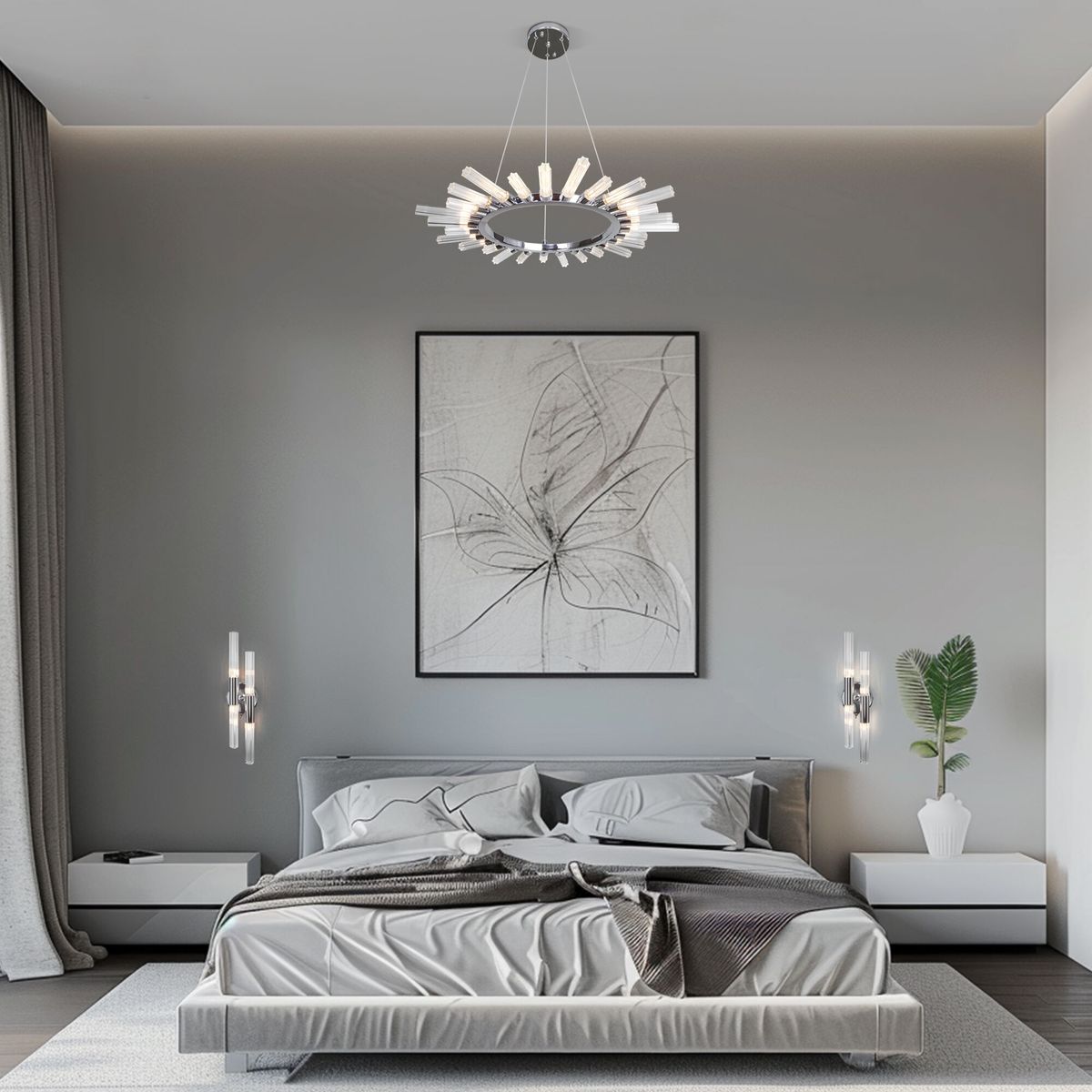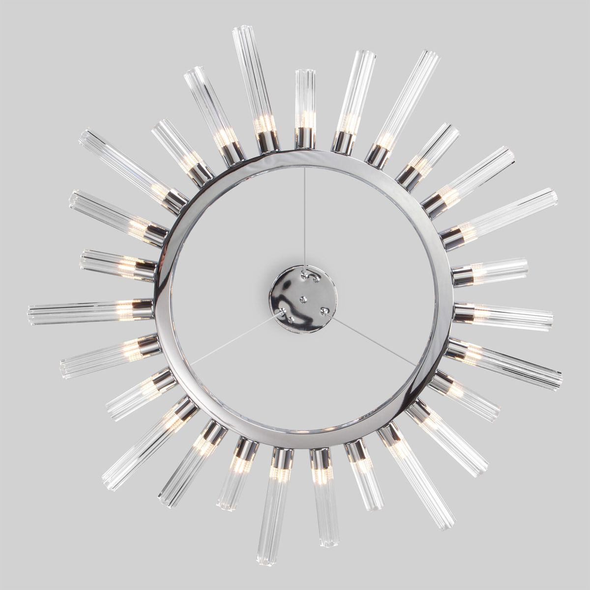 Производитель светильника рекомендует для устройства 27 галогеновых ламп с цоколем G4 и мощностью 3 W, что позволит осветить помещение площадью 9 кв.м. Габариты изделия: высота – 800 мм, диаметр – 650 мм.