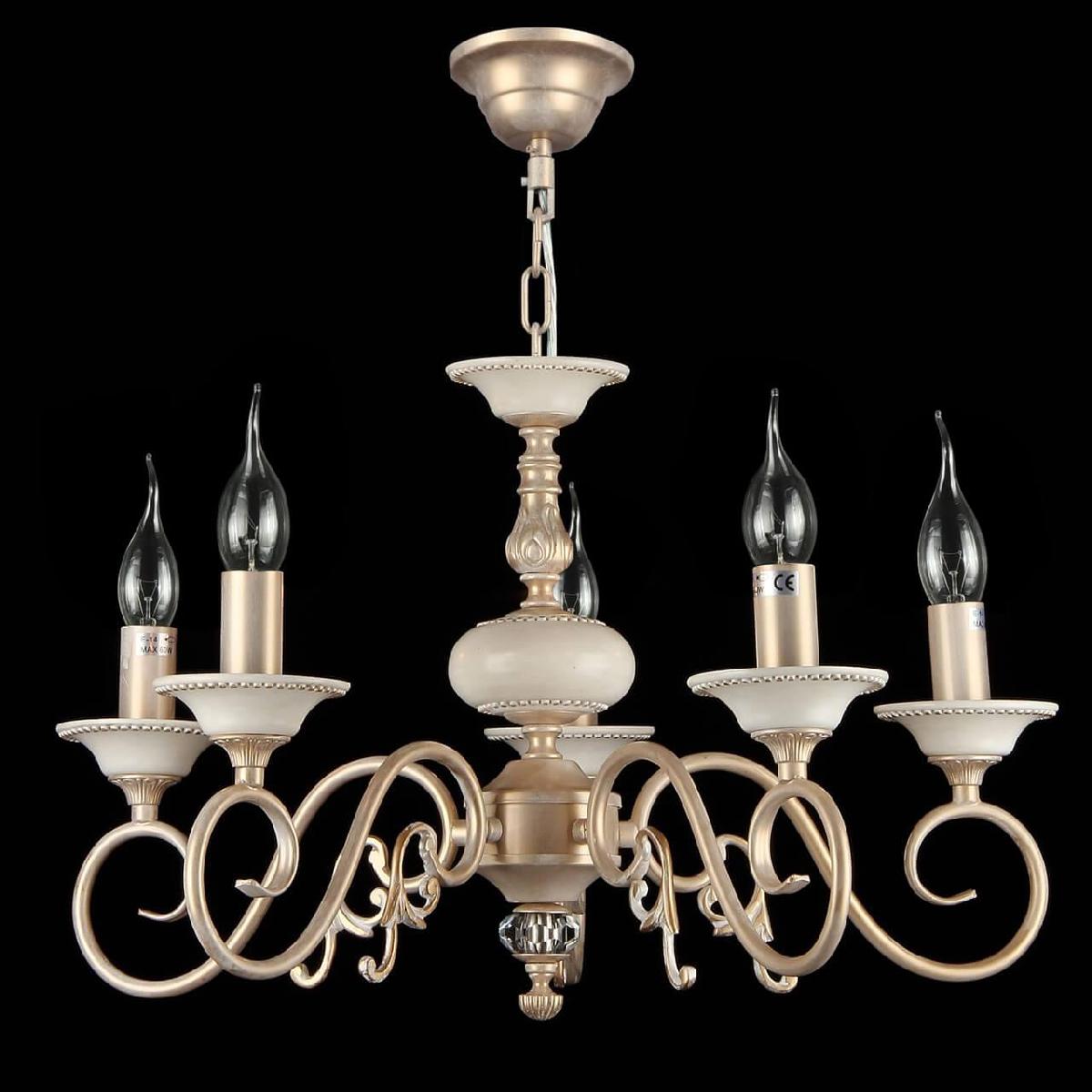 Производитель светильника рекомендует для устройства 5 ламп накаливания с цоколем E14 и мощностью 60 W, что позволит осветить помещение площадью 16,7 кв.м. Габариты изделия: высота – 860 мм, диаметр – 570 мм.