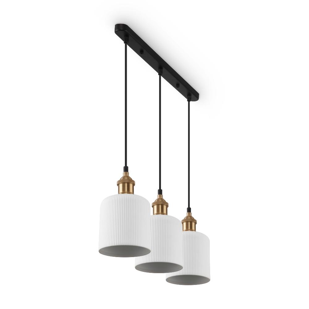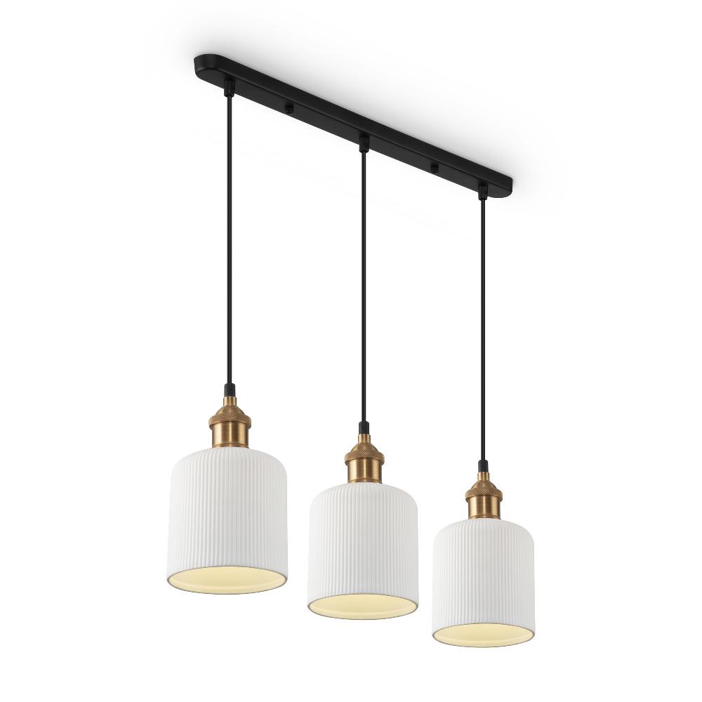 Подвесной светильник Freya FR9001PL-03GB от бренда из коллекции Loft ) подходит для установки в . Лампа из основы - и плафонами из керамики в форме цилиндра - белого цвета.