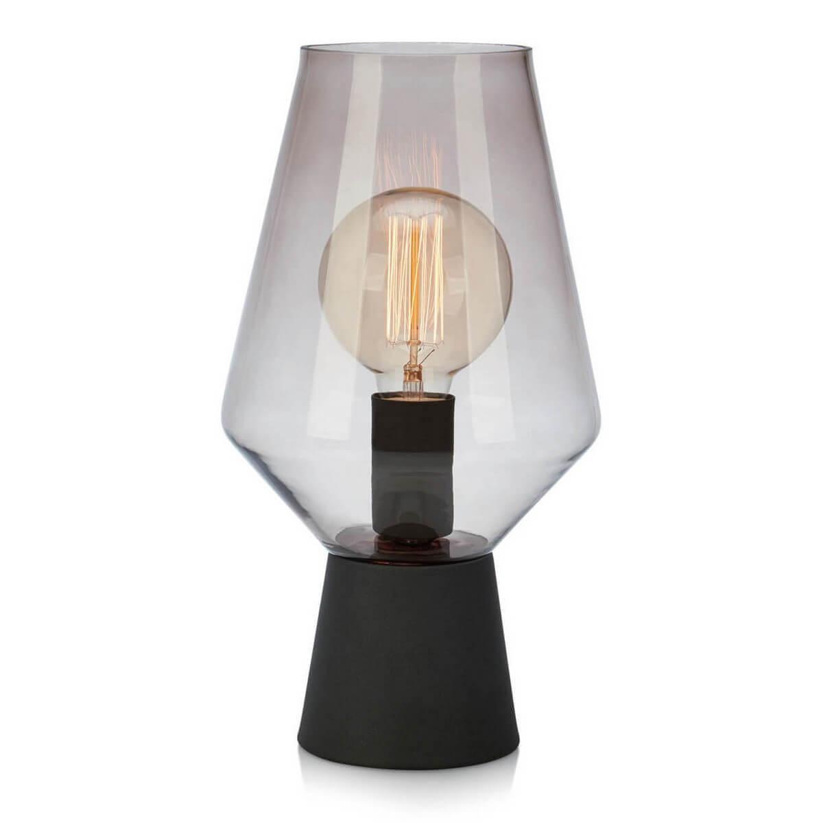 Настольная лампа Markslojd Retro 107131 от Швецаркого бренда Markslojd из коллекции Retro ) подходит для установки на стол в спальни в ретро стиле. Лампа из металлической основы - черного цвета и плафонами из стекла в форме конуса - дымчатого цвета.