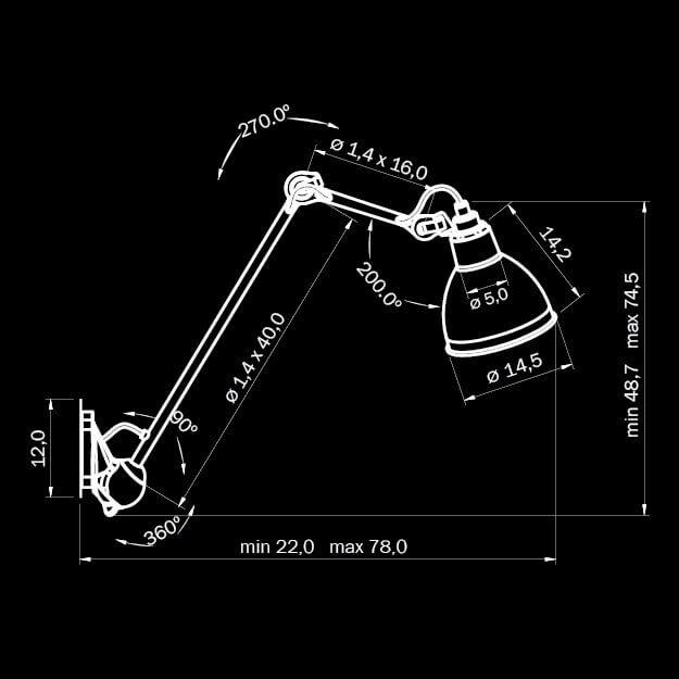 Для спота необходима 1 лампа накаливания 40 W и цоколем E14. Габариты изделия: высота – 745 мм, диаметр – мм.
