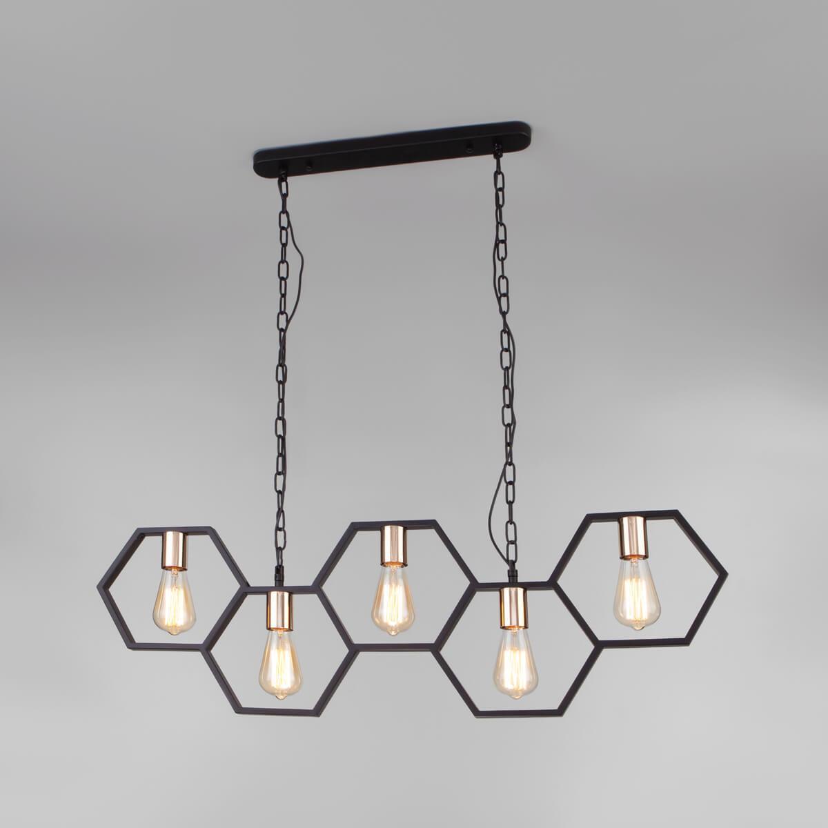 Подвесной светильник Eurosvet Arnia 70117/5 черный от Китайского бренда Eurosvet из коллекции Arnia предназначен для установки на потолок в кухне в лофт стиле. Cветильник в форме декоративного с металлической арматурой черного цвета и черного цвета плафонами из металла предназначен для освещения 16 м2.