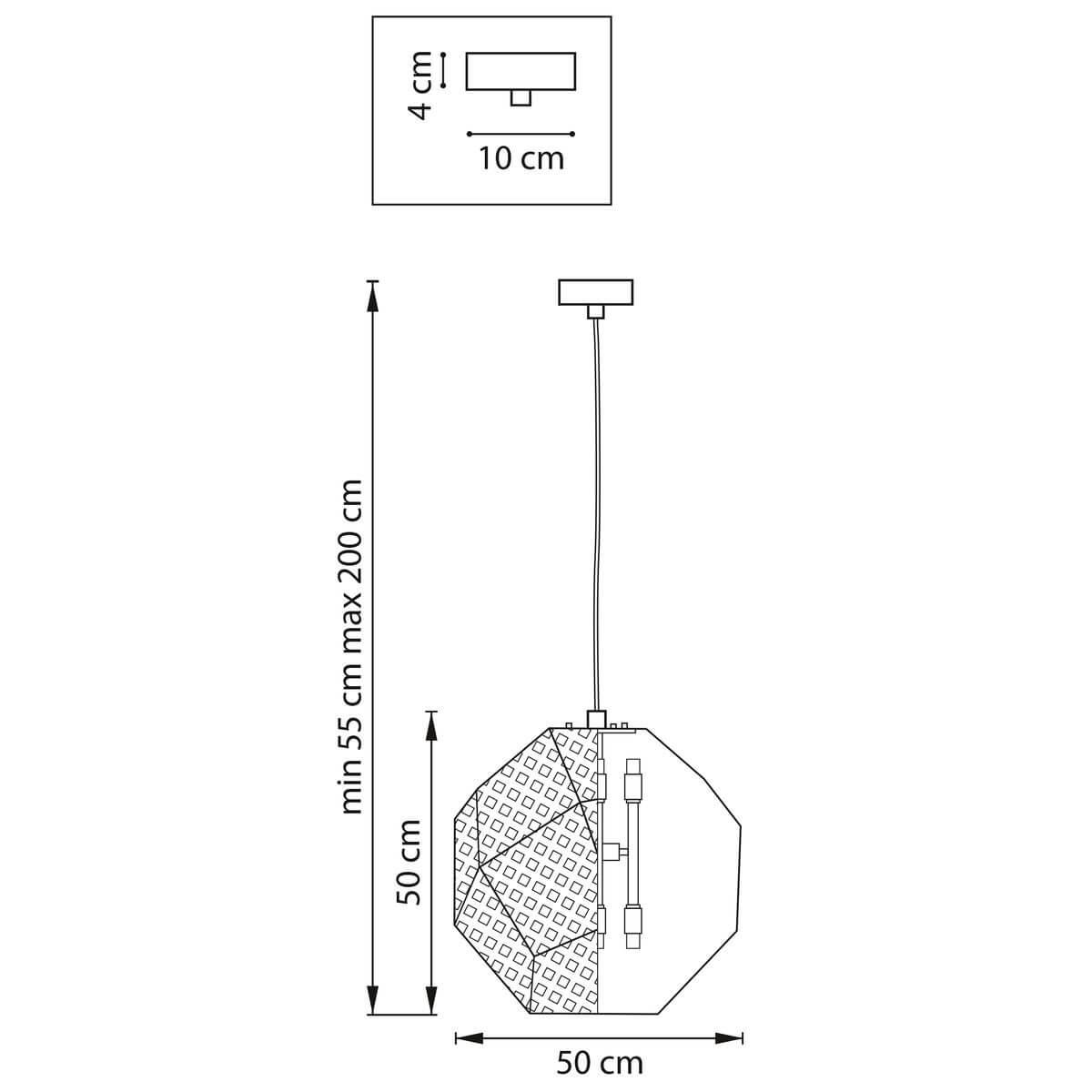Для светильника необходима 6 галогеновых ламп 40 W. Габариты изделия: высота – 550 мм, диаметр – 500 мм.