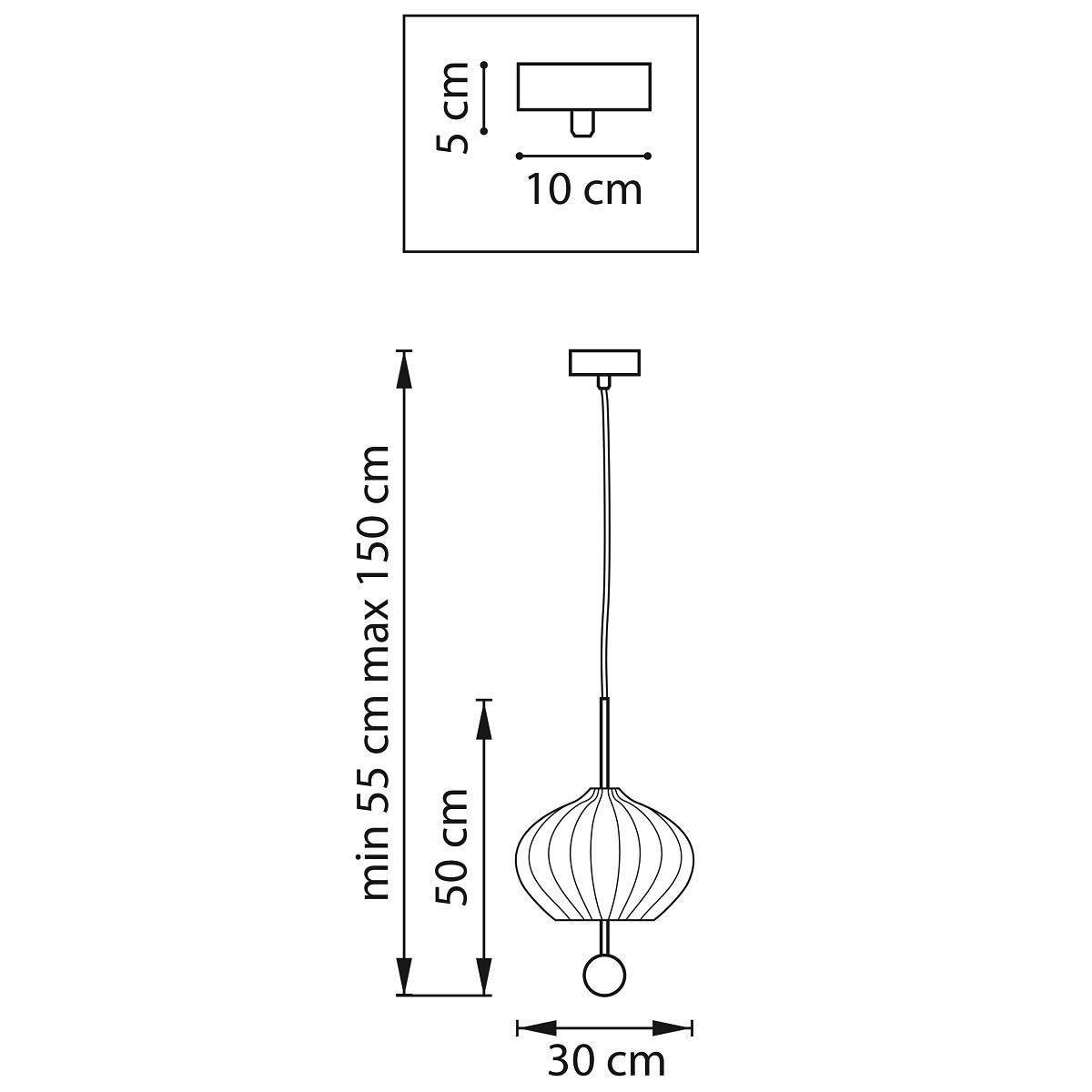 Для светильника необходима 3 светодиодные лампы 6 W. Габариты изделия: высота – 550 мм, диаметр – 300 мм.