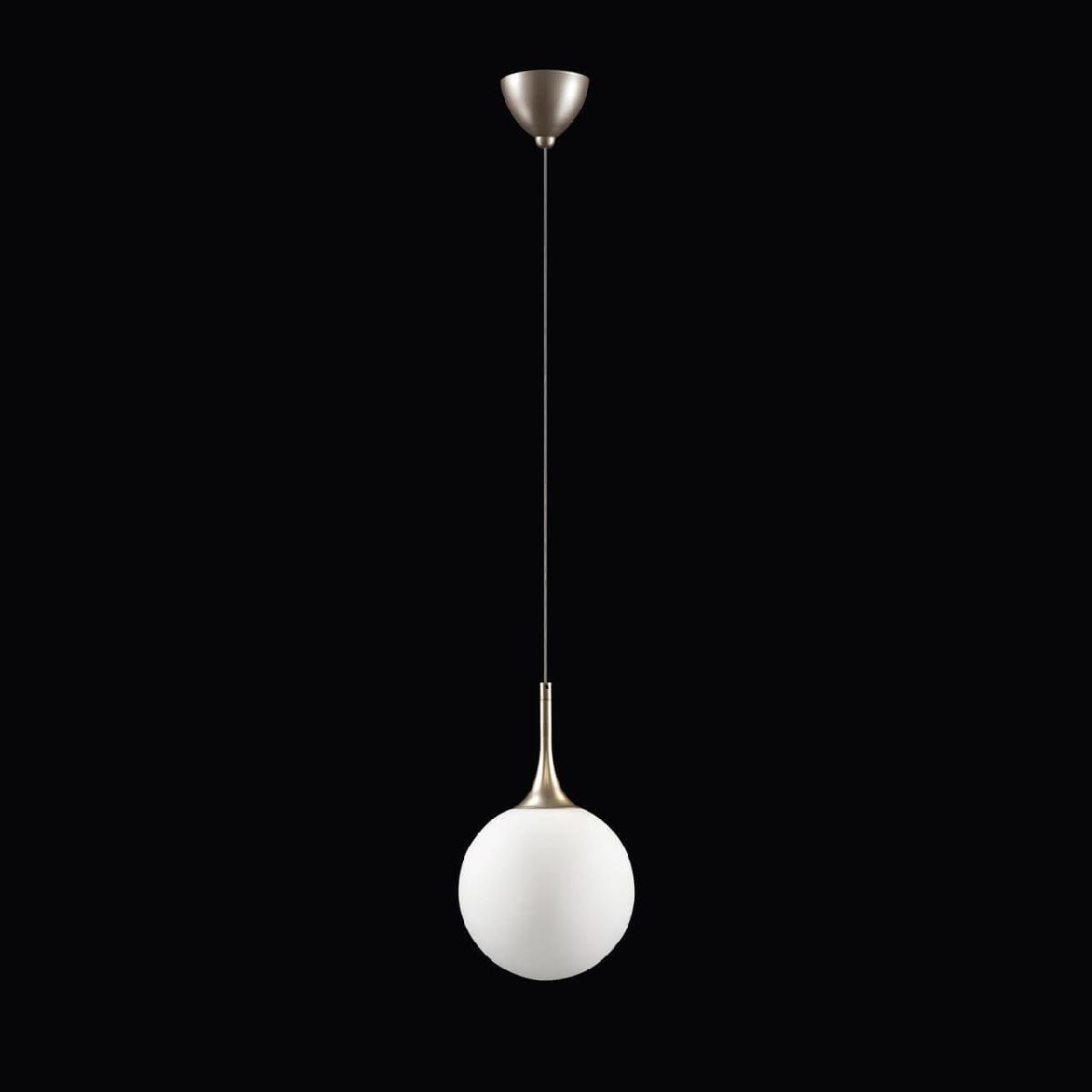 Подвесной светильник Lightstar Globo 813023 от Китайского бренда Lightstar из коллекции Globo предназначен для установки на потолок в кухне в стиле Арт-деко. Cветильник в форме круга с металлической арматурой цвета шампунт и белого цвета плафонами из стекла предназначен для освещения 2 м2.