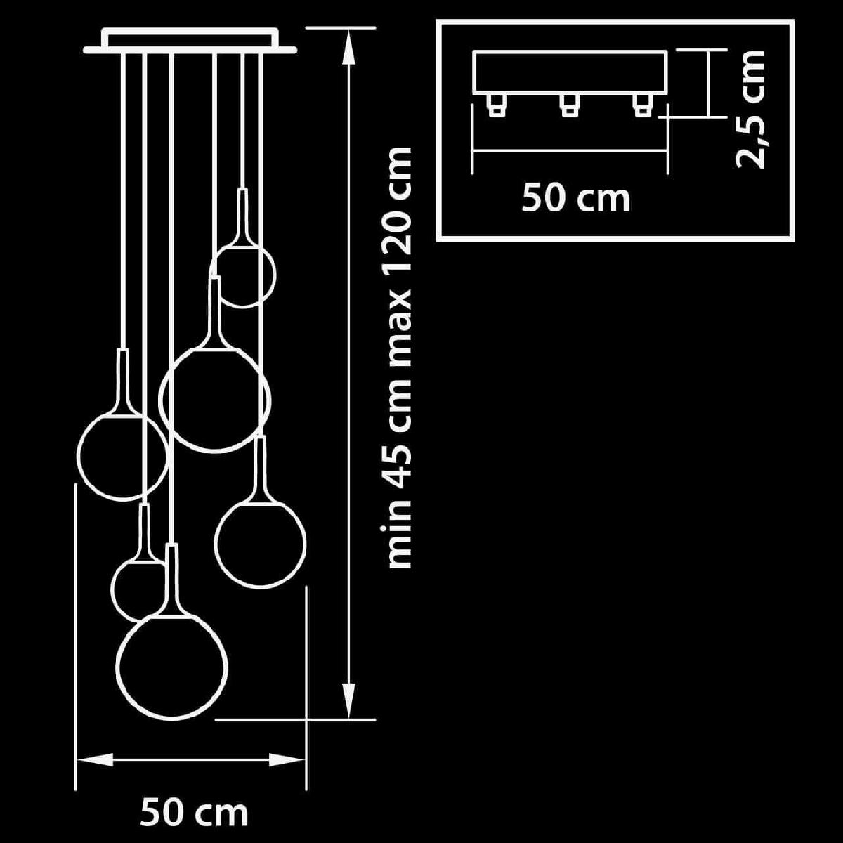 Для светильника необходима 6 ламп накаливания 40 W. Габариты изделия: высота – 450 мм, диаметр – 500 мм.