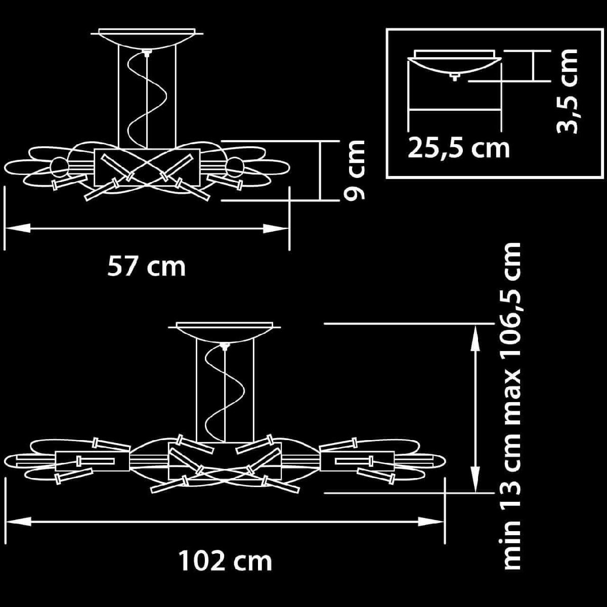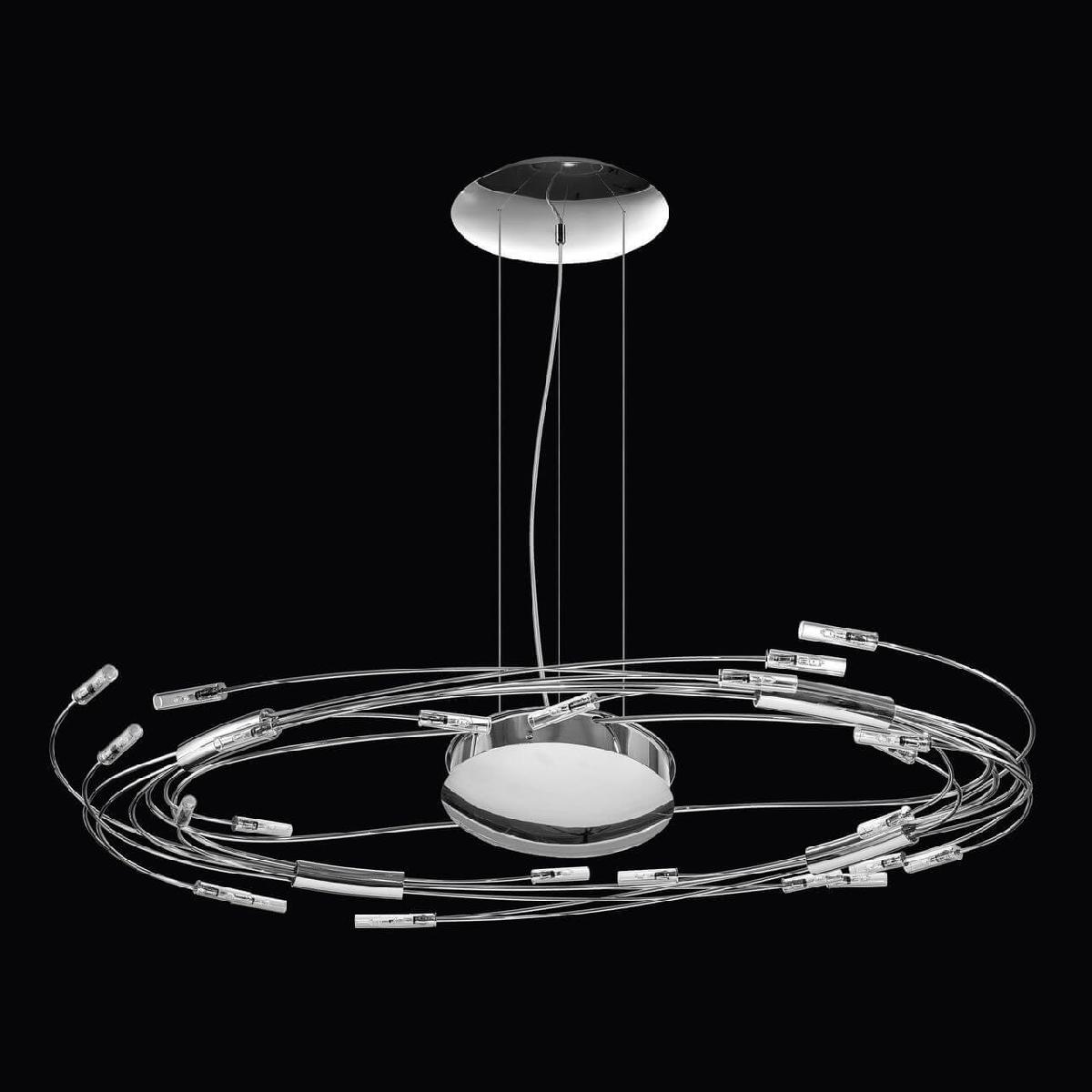 Для светильника необходима 24 галогеновых ламп 20 W. Габариты изделия: высота – 130 мм, диаметр – мм.