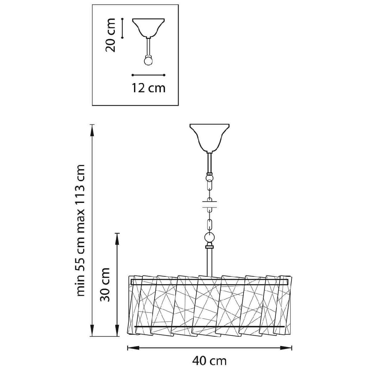 Для светильника необходима 4 лампы накаливания 40 W. Габариты изделия: высота – 300 мм, диаметр – 400 мм.