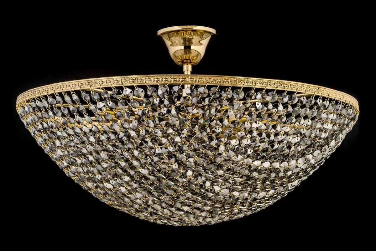 Потолочный светильник Arti Lampadari Stella E 1.3.50.506 G от Итальянского бренда из коллекции Stella предназначен для установки на потолок в гостиной в классиком стиле. Cветильник в форме с металлической арматурой залотого цвета и прозрачного цвета плафонами из хрусталя предназначен для освещения м2.