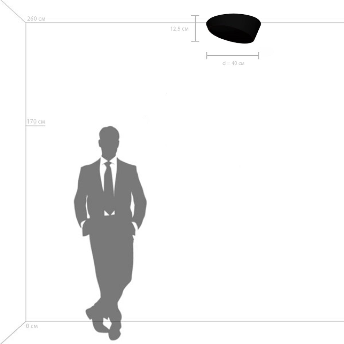 Для светильника необходима 1 светодиодная лампа 34 W. Габариты изделия: высота – 125 мм, диаметр – 400 мм.