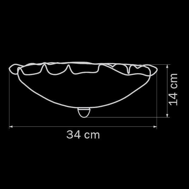 Для светильника необходима 3 лампы накаливания 40 W. Габариты изделия: высота – 130 мм, диаметр – 340 мм.