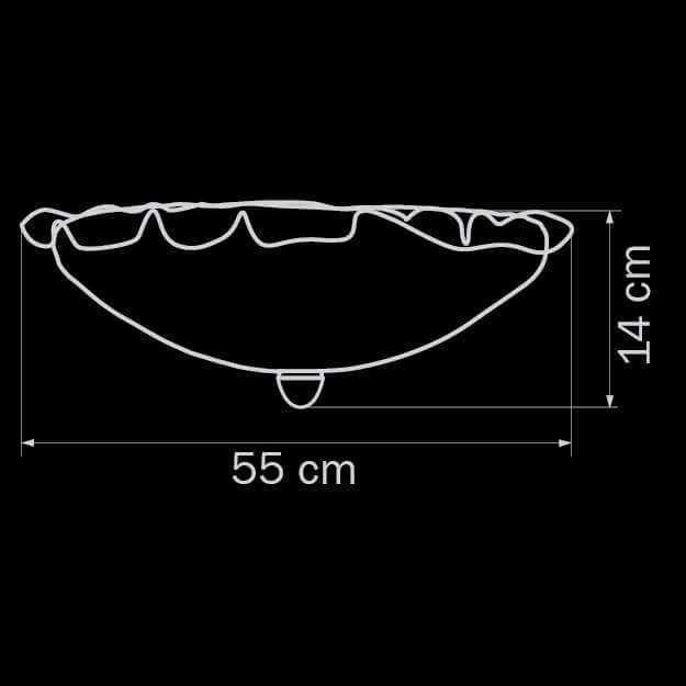 Для светильника необходима 5 ламп накаливания 40 W. Габариты изделия: высота – 140 мм, диаметр – 550 мм.