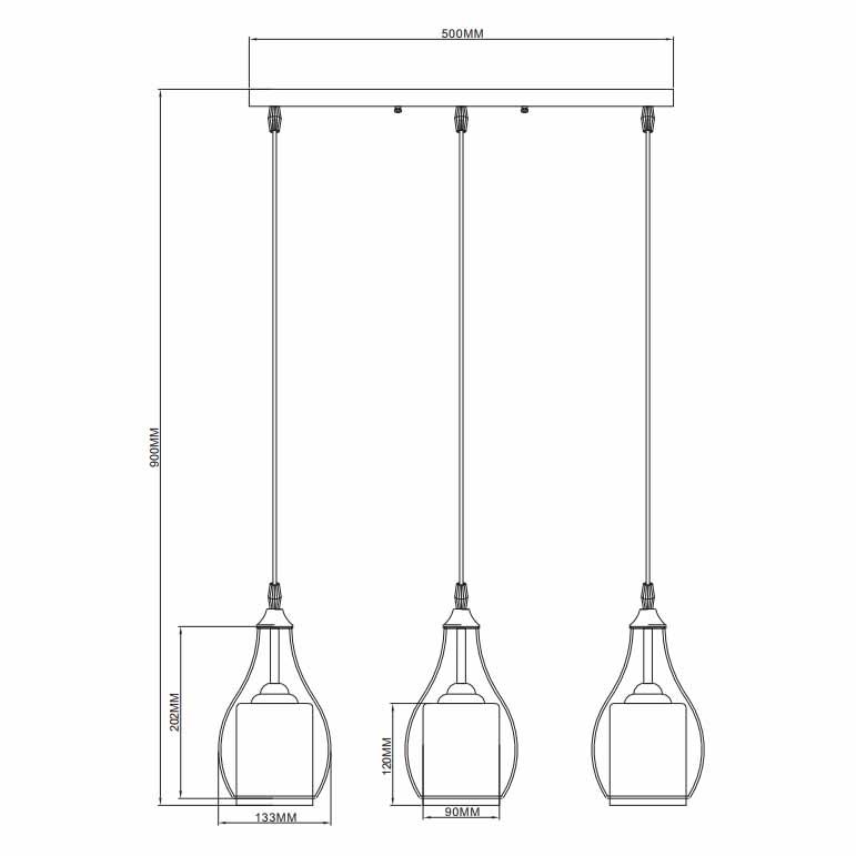 Для светильника необходима 3 лампы накаливания 40 W. Габариты изделия: высота – 900 мм, диаметр – мм.