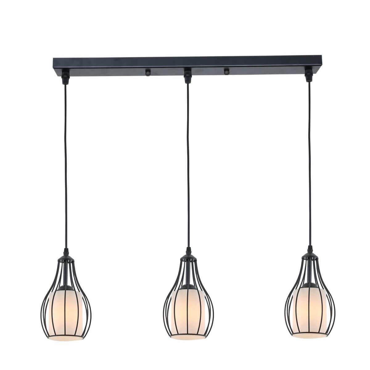 Подвесной светильник Rivoli Viola 5042-203 Б0044359 от Итальянского бренда Rivoli из коллекции Viola предназначен для установки на потолок в кухне в лофт стиле. Cветильник в форме овала с металлической арматурой черного цвета и белого цвета плафонами из стекла предназначен для освещения 10 м2.
