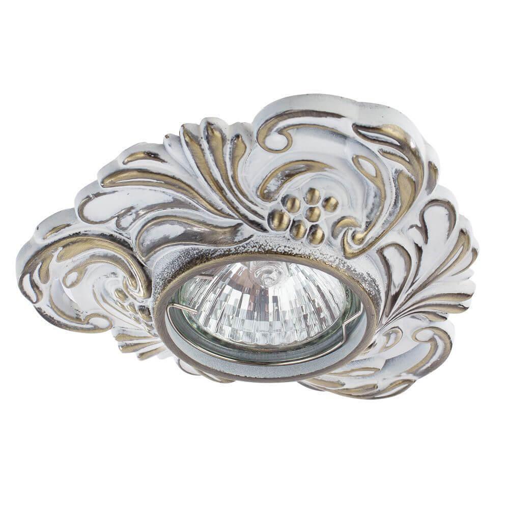 Встраиваемый светильник Arte Lamp Occhio A5285PL-1WG от Итальянского бренда Arte Lamp из коллекции Occhio предназначен для установки на потолок в гостиной в классиком стиле. Cветильник в форме Флористика с металлической арматурой залотого цвета и белого цвета плафонами из металла предназначен для освещения 2,8 м2.