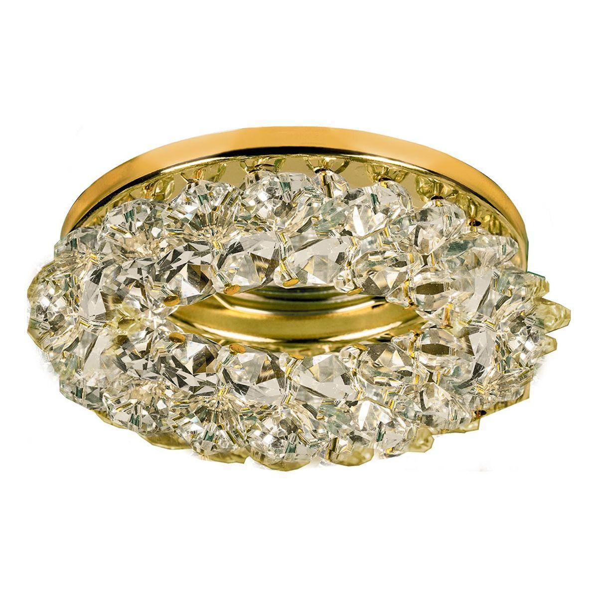 Встраиваемый светильник Escada Novara 261056 от бренда Escada из коллекции Novara предназначен для установки врезания в гостиной в стиле модерн. Cветильник в форме Флористика с стальной арматурой залотого цвета и прозрачного цвета плафонами из хрусталя предназначен для освещения 2 м2.