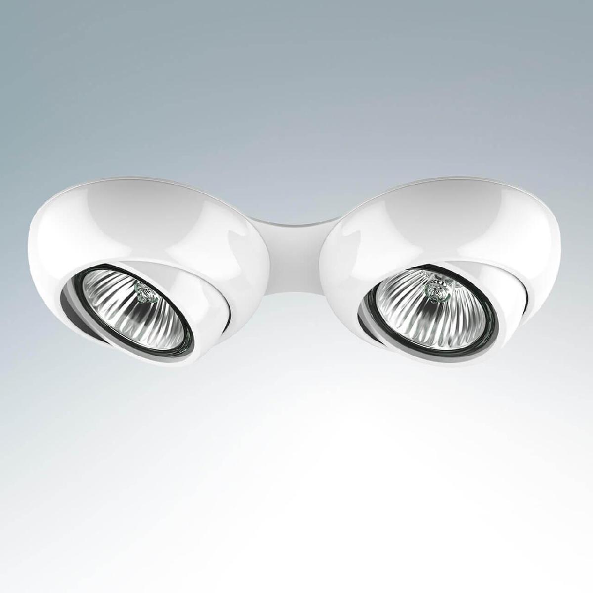Для светильника необходима 2 галогеновые лампы 50 W. Габариты изделия: высота – 35 мм, диаметр – 85 мм.