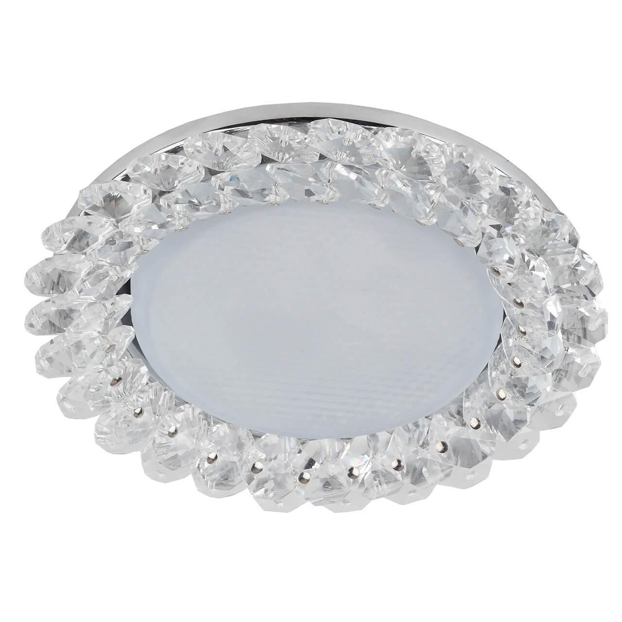 Встраиваемый светильник ЭРА GX53 DK84 CH/WH Б0020573 от бренда ЭРА из коллекции GX53 предназначен для установки врезания в гостиной в стиле модерн. Cветильник в форме круга с металлической арматурой цвет хрома и прозрачного цвета плафонами из хрусталя предназначен для освещения м2.
