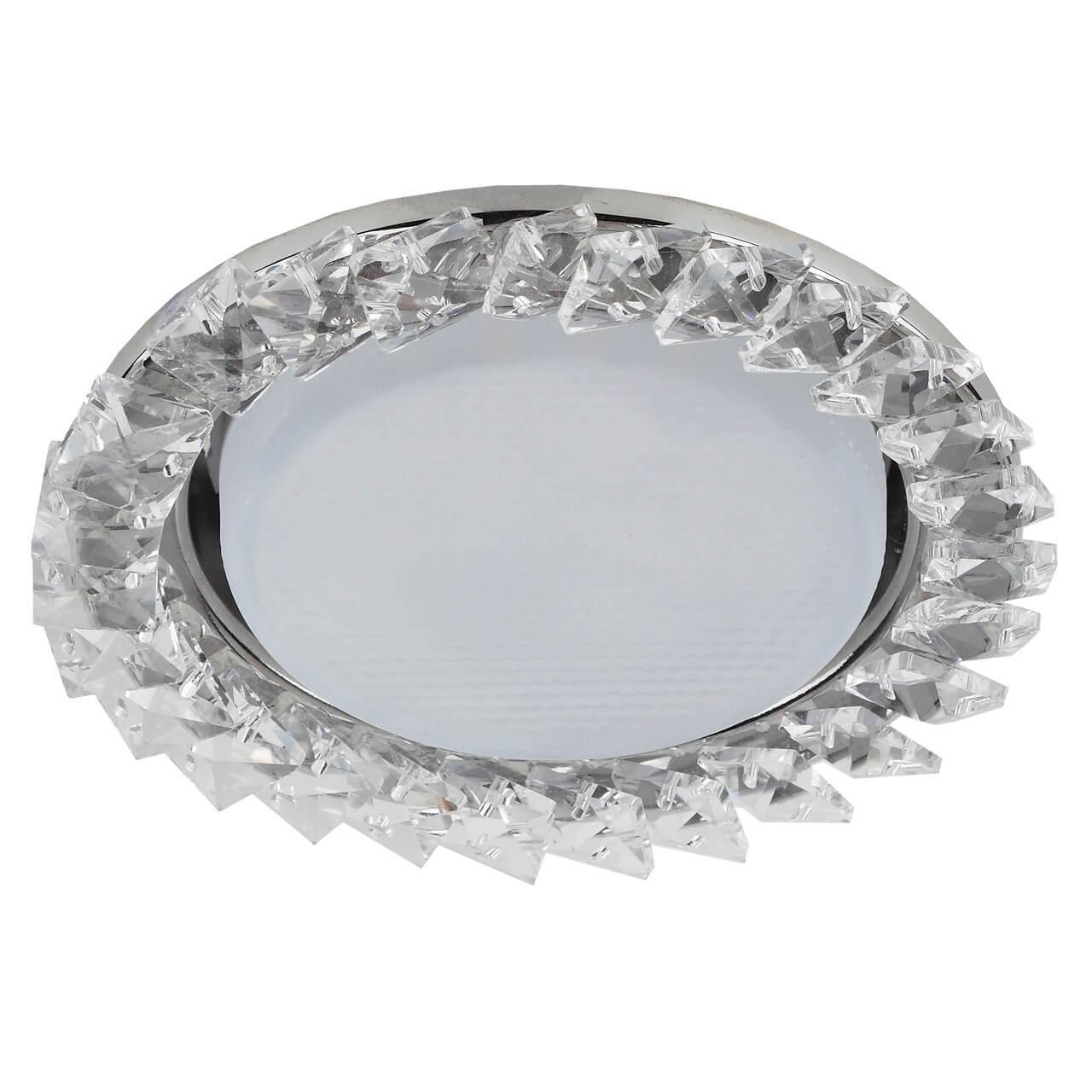 Встраиваемый светильник ЭРА GX53 DK86 CH/WH Б0020576 от бренда ЭРА из коллекции GX53 предназначен для установки врезания в гостиной в стиле модерн. Cветильник в форме круга с металлической арматурой цвет хрома и прозрачного цвета плафонами из хрусталя предназначен для освещения м2.
